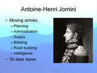 There is a story about Jomini, which may be a myth, which I find very instructive. It seems that Jomini requested 30 days leave from the army from the Napoleon. The great man was inclined to grant the leave, but he inquired of Jomini how he could know where the army would be 30 days from now since Napoleon himself had not decided where to go. Jomini retorted that you will be in the only place you can be and still supply your troops. He got his leave.