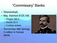But before we get all lathered up about the economic disaster Banks represents I would have you hark back to what I said a few minutes ago about Mill Springs, Kentucky where the South “delivered” 10 cannon, 100 wagons, over 1,000 horses, and a number of boats filled with the goods of war. The going price for a horse was about $120.00 in 1862, so just the 1,000 horses were worth $120,000.00 in 1862 dollars or 3 million dollars today for the horses alone. So perhaps the north should have referred to the unfortunate General Felix Zollicoffer as Thomas’s Commissary. Further, as we shall soon see, by this time in the war, the North is really starting to rev up its economic engine. We are forced to conclude that the United States could afford Nathaniel Banks in a way that the Confederate States could not.