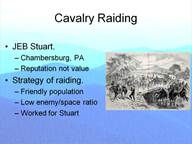 Raiding works best when you have a low ratio of enemy forces to space. Further, it is more successful when you have a friendly civilian population. This worked against Stuart in the east, but the strategy favored Southern raiders in the west. This is because Stuart had neither small enemy forces opposing him nor large space in which to range. And, of course, Pennsylvania did not have a friendly population.