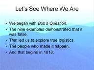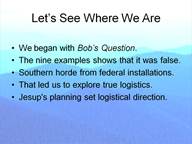 The gentleman standing before you is not a professional historian and most of you in the audience know far more about the civil war than I do. I am not, however, without some qualifications. Back in the day I was an undergraduate in Economics. I spent two years in the US Army Transportation Corp where I taught career army officers about computers and how they relate to logistics. For a dozen years I built computer models of industrial distribution systems for Fortune 500 companies. While not pertaining to my own background my late father was in charge of all class 2 & class 4 supplies on the Normandy beachhead. And finally I have read many books on the civil war to include three that directly impact this talk: